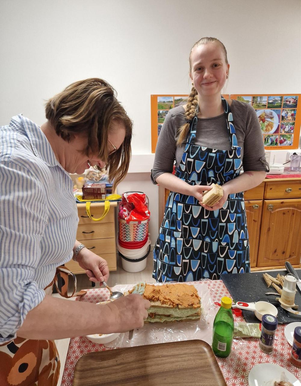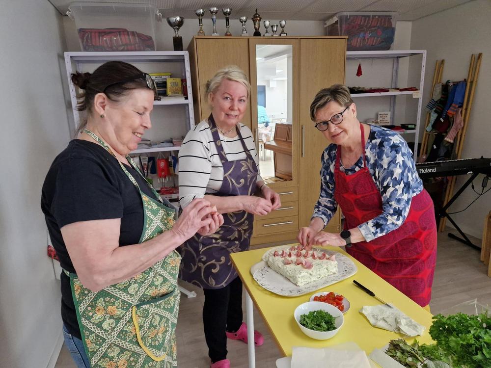 Innokkaat kurssilaiset kokoontuivat tekemään voileipäkakkuja. Toinen ryhmä päivällä ja toinen illalla.