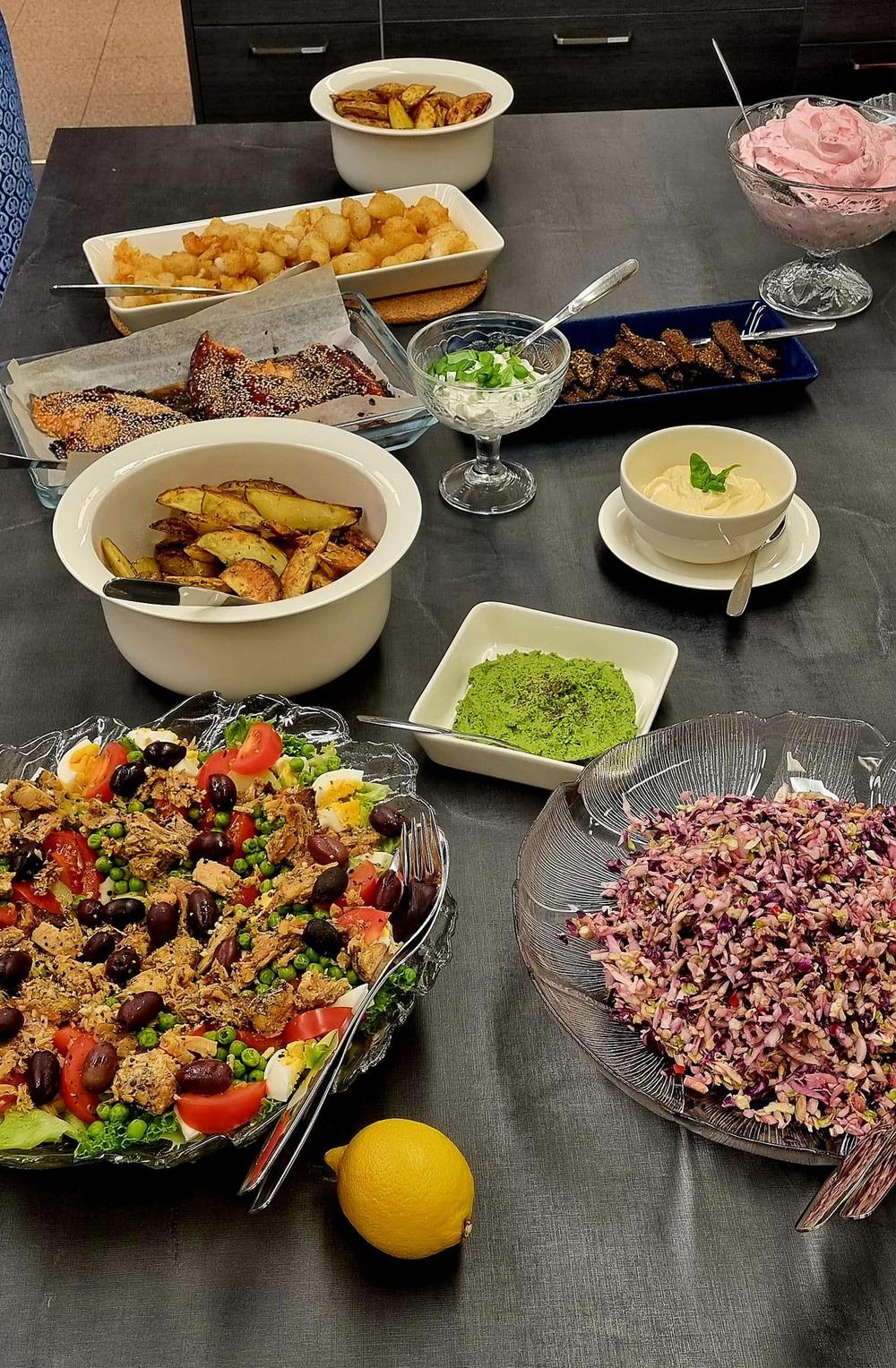 Yhdistyksen puolelta tarjolla oli puolestaan herkullisia ja värikkäitä levitteitä linssiskonssien ja patongin kera. Juomaksi oli tarjolla sitruunainen ja teepohjainen juoma.Reseptit löytyvät uutisen lopussa olevista linkeistä.