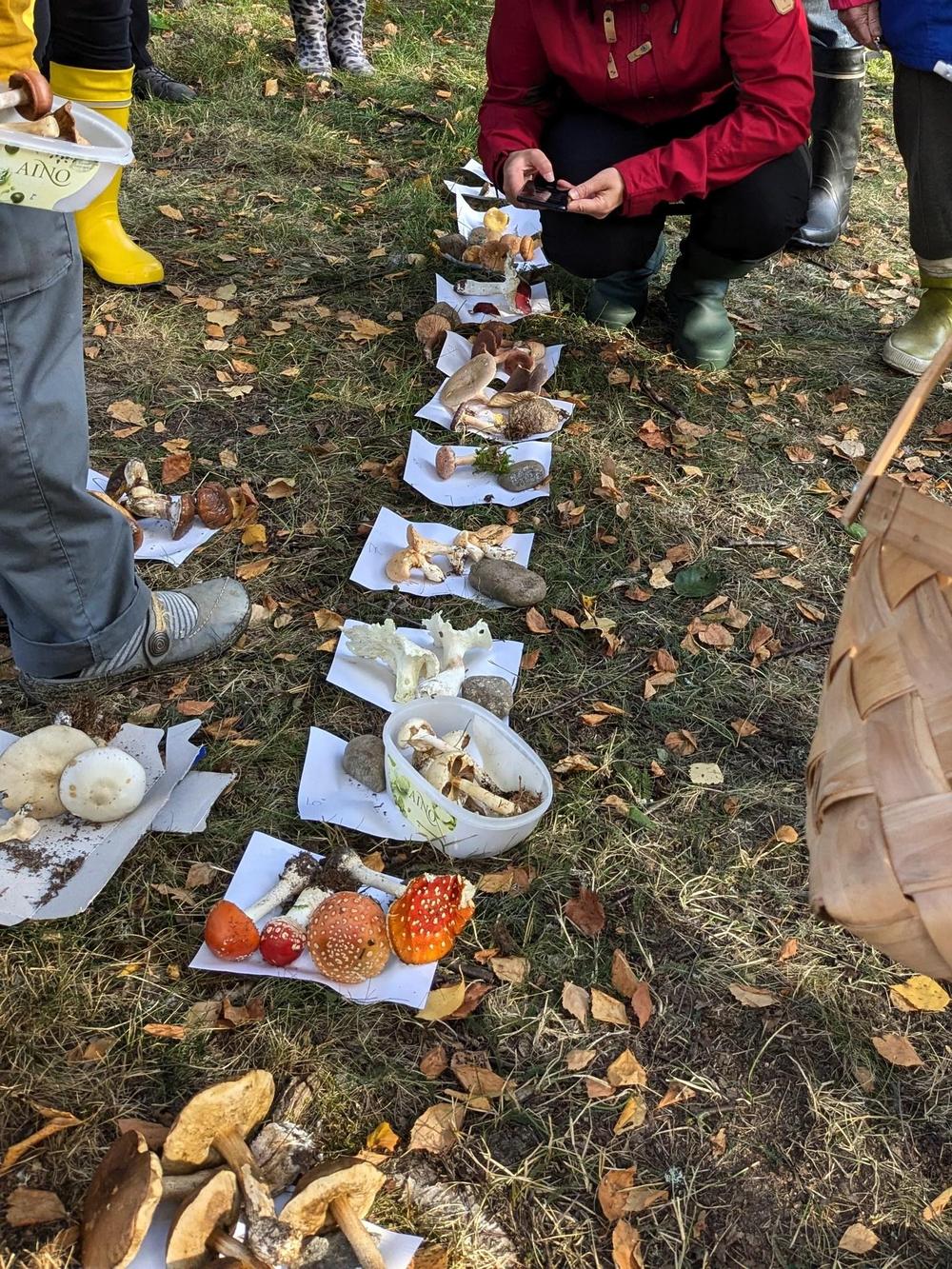 Illan päätteeksi Ulla Laaksonen järjesti meille pienen sieninäyttelyn ja esitteli erilaisia haperoita, rouskuja ja tatteja.