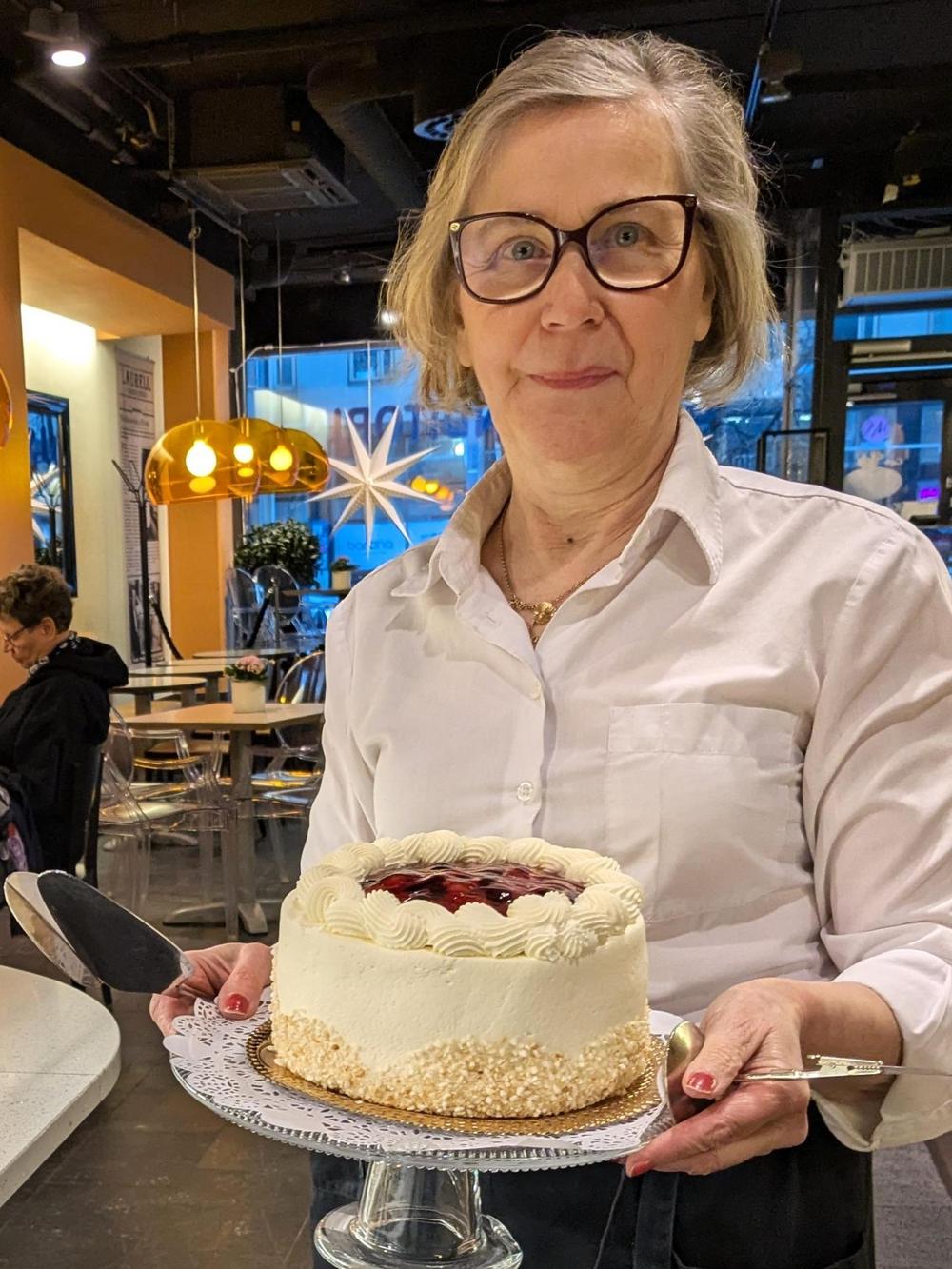 Ja lopuksi joimme makoisat kahvit piirakan kera tilan viihtyisässä kahvilassa, jossa Jenni Turkki, Kinnarin tilan keittiö- ja myymäläpäällikkö, esitteli meille tilamyymälästä löytyviä kauratuotteita ja kertoi myös myymälän toiminnasta. Myymälä on avoinna joka viikon torstaista lauantaihin ja marras- sekä joulukuussa joka päivä.