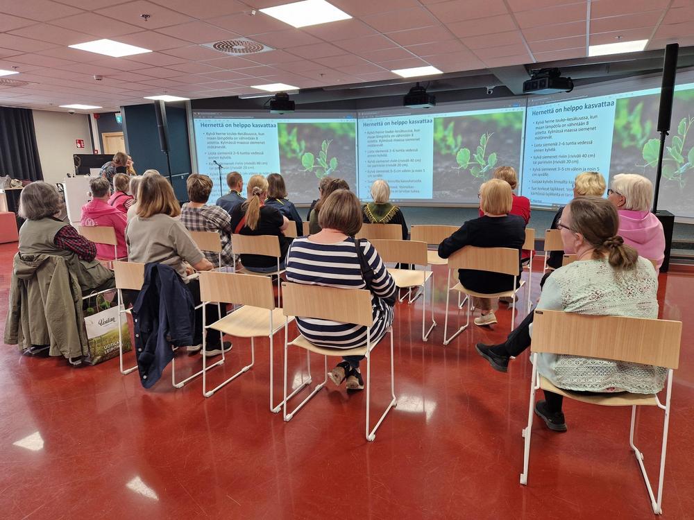 Illan järjestelyistä vastasivat Hämeen puutarhamartat, Lahden puutarhaseura ja Hyötykasviyhdistyksen P-H alueosasto. Kiitos mukavasta ja herkullisesta illasta!