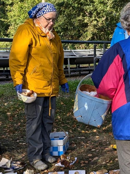 Sieniasiantuntijamme Ulla Laaksonen viritti osallistujat lajituntemukseen sieninäyttelyn avulla – kiitos myös Aleksandrille, Marialle ja Olgalle täydennyksistä sieninäytteisiin ja Pekalle kolmekielisestä (suomi-ukraina-venäjä) sienilajitaulukosta. Sienitietokilpailu syvensi osaamista, ja Ullan havainnolliset tuntomerkkikuvaukset tarttuivat muistiin samalla, kun nostivat hymyn huulille – kuten pahis-sappitatin mustat verkkosukat.