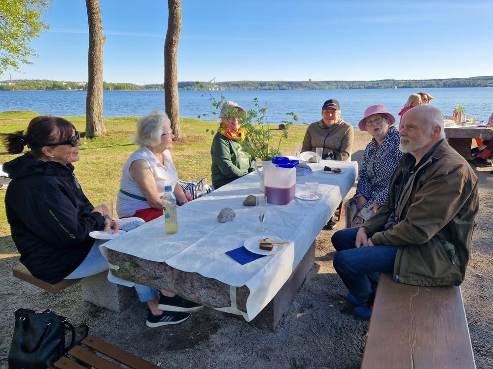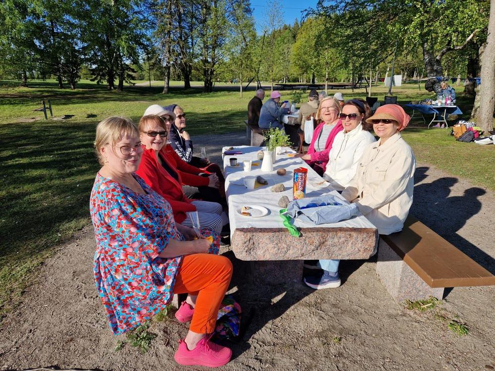 Kun luonto tarjoilee tsa-tsa-tsaa-vihreäää ja suloista auringonkultaa, mikä sopisi paremmin kuin juhlia luonnon helmassa! 15 hyväntuulista Marttaa saapui juhlapaikalle Mukkulan tapahtumapuistoon. Ensin luonnonsuojeluvalvoja Mia Honkanen kierrätti juhlijat Ritamäellä, Lahden vanhimmalla luonnonsuojelualueella, mistä tuliaisina oli iloinen puheensorina ja monia uusia kasvituttavuuksia. Antoisan juhlapuheen piti puheenjohtajamme Ulla Laaksonen, ja sen jälkeen nostime maljan 125-vuotiaalle Martat-järjestölle, koko Suomen yhteislle Marttatapahtumalle ja rakkaille metsillemme. Tarjoilupöytä notkui herkkuja niin, että kuuluisia ”seitsemän sortin kahvipöytäkin” sai kalveta. Siinä pöydän antimista ja mukavista Martta-kavereista nauttiessa illan varjot pitenivät ihan huomaamatta. Kiitos ja kumarrus kaikille yhteisen illan onnistumisesta!