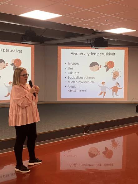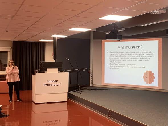 Muistiyhdistyksen asiantuntija Virpi Veijanen kertoi muistin toiminnasta ja muuttumisesta, miten voi edistää aivojen hyvinvointia ja milloin pitää huolestua. Tätä mielenkiintoista aihetta oli kuuntelemassa 27 marttaa Trion ohjelmalavalla.