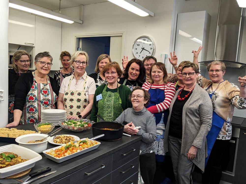 Marttalassa kokattiin 7.3. 2024. Monenlaista herkullista ruokaa kasviksista. Lisäksi saimme tuhdin tietopaketin uusista kasviproteiinien lähteistä. Illan opastajina toimivat kotitalousasiantuntija Kati Koskela ja harjoittelija Rita Hämeen Martoista.