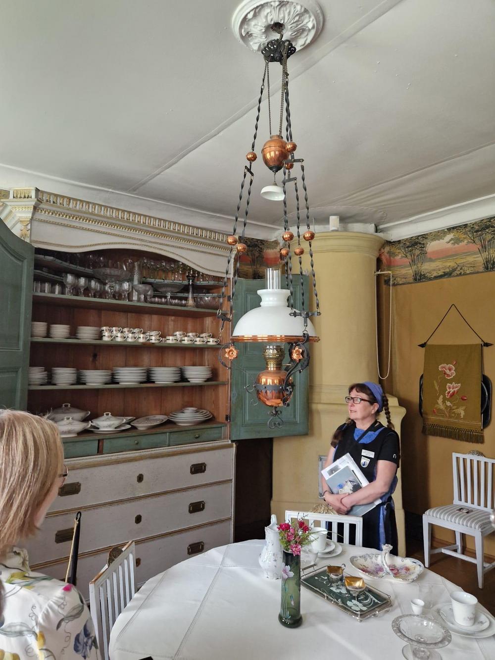Harvoin osuu kohdalle sellainen historian taitaja, joka tarjoilee totta ja tarua kuin paras dekkari. Mutta Kyösti Toivonen, tämän päiväinen oppaamme Hollolan pappilassa ja kirkolla, todella osasi tarinankerronnan. Heti vanhan pappilan vaunuaitasta alkaen, mustaan samettiin verhotun ruumiskärryn ja alueen ensimmäisen kivisen hautamuistomerkin ääreltä välittyi värikäs kuva entisaikojen elämänmenosta ja ihmiskohtaloista. Pappilan kauniisti korjatussa ruokasalissa, mehevän fetajuustopiirakan ja kuohkean omenatortun saattelemana paljastuivat pääkohdat pappilan historiasta ja siellä vaikuttaneista kirkonmiehistä. Hautausmaakierros ja kirkkoon tutustuminen avasivat lisää uskomattomia elämäntarinoita ja alleviivasivat varsinkin sitä, miten monin tavoin Hollolan kirkon vaiheet kietoutuvat maailmanpolitiikan polveiluun. Miten Venäjän ja Ruotsin valloittajanelkeet, uskonpuhdistus ja jopa suomalaiset kulttuurivaikuttajat Runebergista ja Topeliuksesta Lönnrotiin liittyvät Hollolan kirkon tarinaan. Vaikka hyytävä tuuli tuiversi ja sateen uhka väijyi, eivät ne hienoa historiasukellustamme estäneet eivätkä paikan kauneutta himmentäneet.