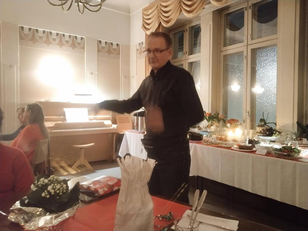 Ilta alkoi puheenjohtaja Leilan puheella ja hauskalla joulutarinalla.